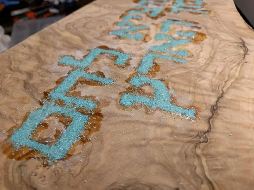 I sourced the wood from an eBay seller, designed the lettering in Illustrator, and carved the letters using my CNC. The inlay process, which I discovered online, involved the use of cyanoacrylate glue.